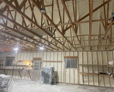 We offer Closed-cell Spray Foam, Blown-in Cellulose / Fiberglass, Dense-pack Cellulose, Web and Blow (Blown in Blanket), Hanging Fiberglass, Rim Joists, Bonds, Attics, Crawlspaces, Vapor Barriers, Baffles, Ventilation fixes, and more! And we do it for Residential, Commercial, New Builds, Renovations, Pole Barns, Barndominiums, Michigan Grows, Transit Vans, RV's, Deer Blinds, Floating Docks... we've done it all!